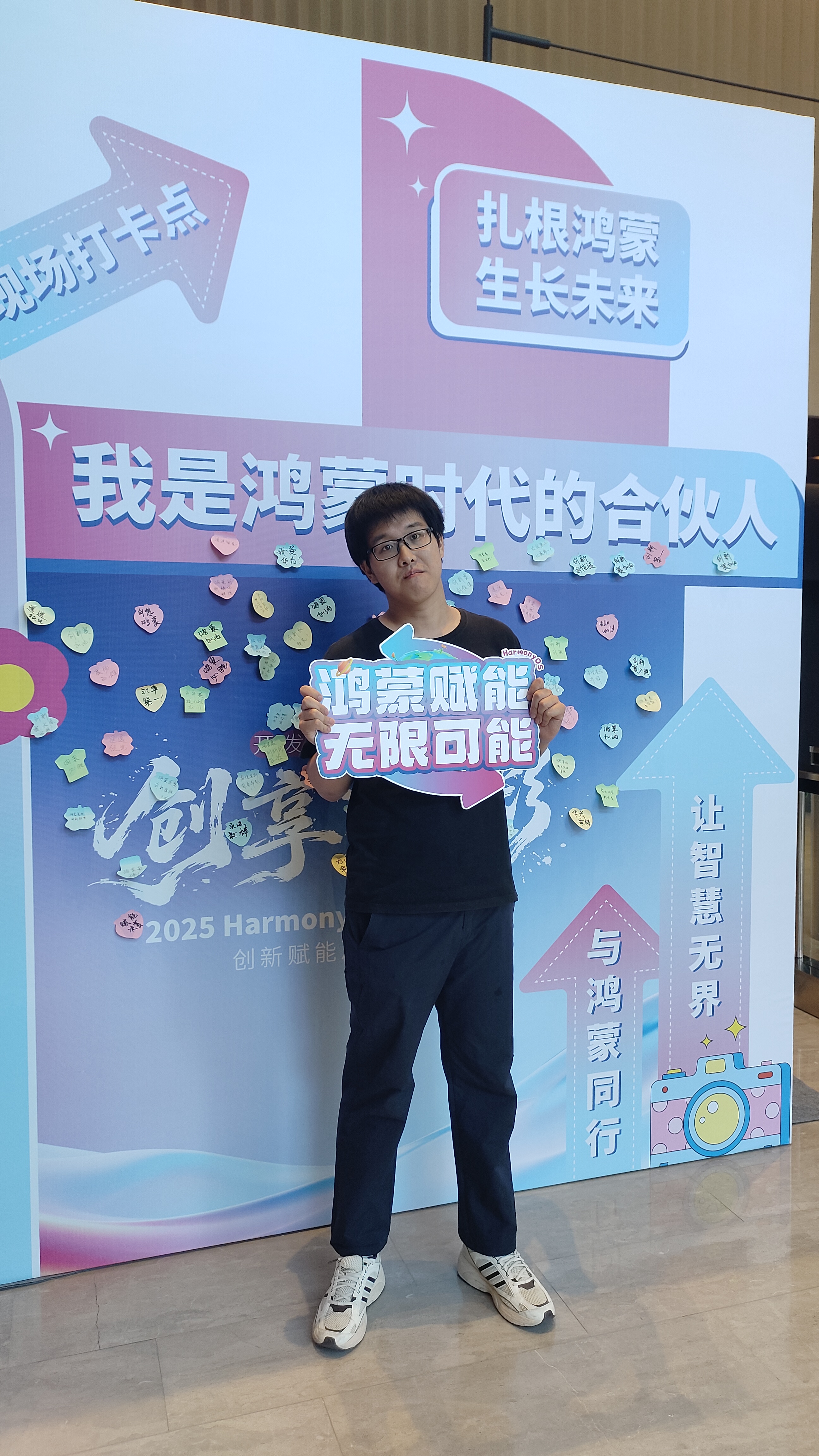 为了增强开发者的归属感和认同感,并在2025 HarmonyOS创新赛专场沙龙中营造轻松活跃的交流氛围,我们在活动现场特别设置了《我是鸿蒙时代的合伙人》现场打卡活动,邀请到场的开发者们在指定区域拍照,并晒出自己的现场参会照片和参会感想。将这份独特的线下体验分享至线上活动评论区,就有机会赢取惊喜好礼!